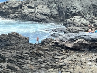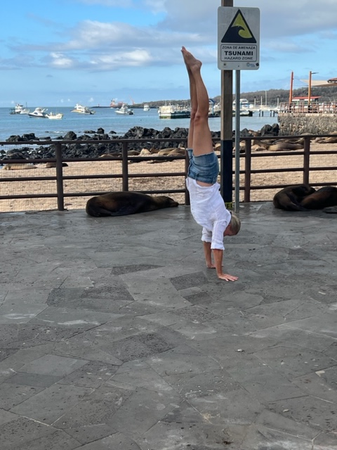 We left the ship for a few days and headed to The Galapago Island of San Cristobal. There were 14 of us, including John and Carolyn from Scottsdale that we’ve met, and stayed at the Golden Bay Hotel right on the beach. This boutique hotel was beautiful and service was tremendous. Highly recommend if you’re thinking a trip there. Here, animals are like family. They are not worried about humans because they have never had a reason to be afraid of one. Sea Loins are everywhere….I mean…everywhere. You need to careful where you sit or walk. They are on streets, benches and rocks on the beach as well as playing in the water. We had great nature guides who patiently answered questions and made sure all was safe. There were so many SL’s at the beach outside our hotel and all of us needed to sleep with ear plugs (except Charlie) because the bark, yell, scream and other weird noises all night. There were some pups only a week or two old and sadly, one adult had died on the beach. We learned of the process the local naturalists does when the circle of life is ended. They always test the corpse to rule out an epidemic that could take out the species. After they understand how it died, they bury it in the place it died. In this case, they dug a grave on the beach. This certain beach is not a beach humans would go – it’s overrun by SL’s , thank goodness. Most of you know my OCD can get a little wacky imagine me on this beach. (ha ha)