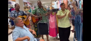 In Fiji, we visited 3 islands. On one island, we hiked to a waterfall and I floated in the pool at the bottom to cool off. It was hot and muggy and the water was such a relief. We happened to be in Suva on Charlie’s birthday. At breakfast, we happen to sit in the same area with 3 other people celebrating their b-days. CRAZY! The ship likes to celebrate birthday mornings with special pancakes and a candle. When we went into town, we stopped at a store to take advantage of their wi-fi. Someone from the ship saw Charlie and wished him a happy birthday. The Fijian workers heard this and gathered guitar players and singers and sang to Charlie one of the best renditions of the birthday song. He was so shocked and happy. At dinner, the Chef made him a special dinner and cake. Nice celebration.