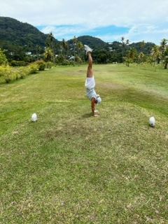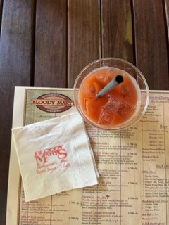Sometimes the world is such a small place……in Tahiti we went to a bar (shocking) and there was a huge CU flag hanging. Can you believe that? From what I could understand, the owners son went to CU. In Bora Bora, after snorkeling we took a taxi to Bloody Mary’s Bar. Had to check this ‘famous’ place off our list. It did not disappoint. Even after a couple of BMary’s, I was shocked I could still try a handstand, even with a splinter from the dock in my hand.