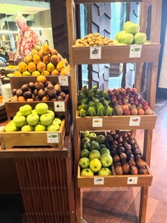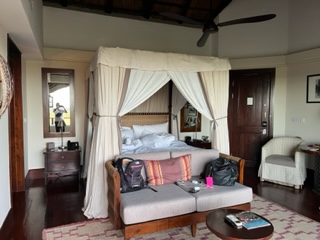 Oh Bali! What a couple of days! Since the ship was scheduled to spend the night in port, we decided to get off the ship and spend a night at the Ritz, Carlton. IT DID NOT DISAPPOINT. We both needed a little ‘quiet’ time and the timing was perfect. We didn’t see much of Bali but that’s ok. The Ritz was perfect. We did a couples massage and stayed in a private Cliffside Villa. This place was huge and included a private pool (first picture) Food was terrific, just look at the fruit, and service was top notch. They have monkey’s everywhere and warn to keep rooms locked since they know how to open the doors and rummage for food . I thought I heard one in our room in the middle of the night and was a little freaked – false alarm of course.