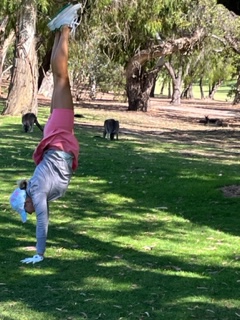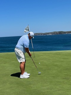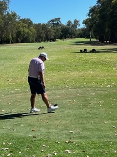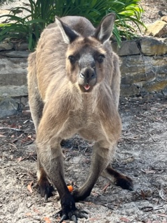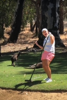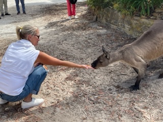 Another Golf day! I don’t mean to sound so blasΓ© about it. It was unexpectedly awesome. It wasn’t the course itself, it definitely wasn’t the rented clubs or the golf cart – it was the KANGAROOS! Kangaroos everywhere on the course. So Many! You’ll see in these couple of pictures that they aren’t afraid of us and really rule the course. I hit a shot into the bunker (surprise, surprise) and when I went to hit it, a younger kangaroo started hopping towards me. I took a couple of steps back from it because I wasn’t sure of to expect. It stopped, looked at me and then hopped through the bunker, all while other kangaroos watched. I have it on video, but can’t upload that on this platform. Charlie and I played that day with Leo, a Judge we met from San Diego, and we had smiles all day. What a treat!