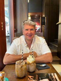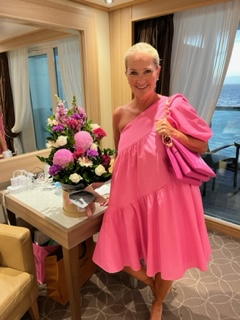 We’ve been at sea the last few days which means Trivia (team name is The Rat Bags), Name that Tune (team name is Looney Toonies), Mexican Train games with new friends (trash talk is spoken here) and today at the pool was Spritz and Splash. Aperol Spritz and snacks served from the pool. We’ spent a few nights dancing on the deck with the band and attending lectures when we find someone interesting. Right now we have a gentleman by the name of Grant Harrold on board. He is most known as The Royal Butler and is UK’s Etiquette Expert and former Butler to the royal family, specifically to King Charles and Queen Consort Camilla, fka Prince Charles and Princess Camilla. Often times, he is tapped for commentary on The Royal Family to cover events and also teaches etiquette classes including classes to the Royal Family. He now runs a college for Butlering if anyone reading this is thinking of a career change. We will be attending his class on Tea, well at least I’ll attend. Charlie doesn’t know about it yet and I may have to trick him. Stay tuned to see if I pass or get kicked out of Tea class.