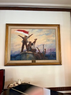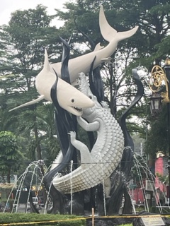 Surabaya is the 2nd largest city in Indonesia. The name Surabaya means Shark and Crocodile – the belief here is that the Shark, king of the sea, and the Crocodile, king of the river, fought to claim their territory. Both animals perished in this fight. This city has many statues to honor this battle as well as the battle for the Indonesian National Revolution that took place in 1945 against the Dutch. After the freedom revolution, the people of the city surrounded the Hotel Merdeka nka Hotel Majapahit. They removed the Dutch flag flying from the roof that has horizontal stripes of red, white and blue. They cut the blue stripe off the flag and created the new Indonesian flag. As with many places we’ve visited, this is a country that is very proud of their history. It’s unfortunate that we don’t have the same pride in the US as we once did.