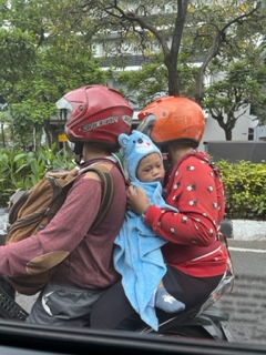 One more thing that tends to surprise us when visiting Asian countries, the amount of Scooters on the road and the organized chaos of traveling on the roads. The most shocking is not only the amount of people who can fit on a scooter but also the lack of helmets on the children. We saw newborn babies and scooters with 3 kids – sans helmets