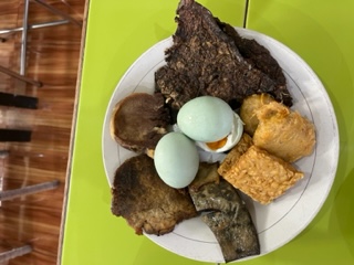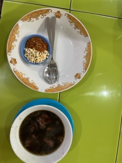 The traditional Indonesian dish is Rawon aka Black Soup. It originated from Surabaya. It uses black keluak (a nut) as it’s main seasoning which gives the strong nutty flavor and dark color to the soup. Our driver took us to ‘the best’ place in town. It was a hole-in-the-wall which makes things feel even more authentic. We weren’t sure of everything we were eating but it tasted π delicious.