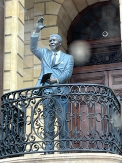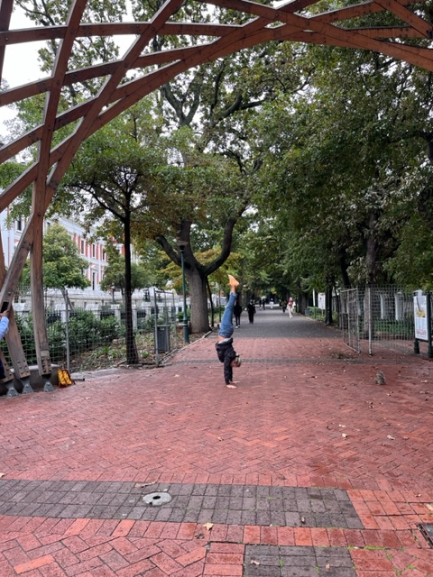 We visited the Company’s Park which is home to what is considered the Big 5 of Cape Town history. It was originally created by the Dutch settlers to grow fresh produce. The oldest pear tree (367 yrs old) grows here along with a herb garden, succulent garden, many plants and flowers. It is where the first slave lodge was located. Parliament Building is here along with the very first street. Lastly, in 2016 a wooden arch was built in honor of Archbishop Emeritus Demond Tutu. I added a new phenomenon by doing a handstand. (waiting for the official declaration and new catagoration of Big 6 ππ) Remy said he’d never seen a handstand in all the tours – yay – I strive to be different! Speaking of different, we saw a white squirrel. π€―