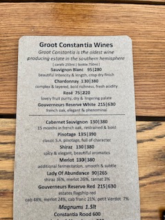 Table Mountain was socked in so we went to Groot Wineries for a tasting and lunch. We hope to return here someday and would love to stay a month or more. You need that much time in order to be able to spend time in all the museums and to experience All The Things.