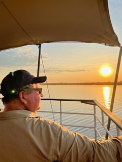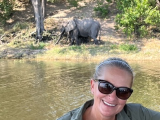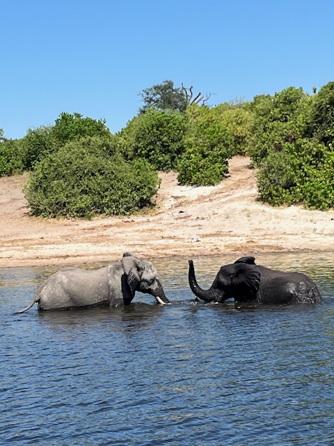 We left Johannesburg and flew to Kasane, Botswana. Kasane is a town in the northeastern corner of Botswana near the borders of Namibia, Zambia and Zimbabwe. It is also home to Chobe National Park and Chobe Game Lodge where we spent the next 3 nights. This Game Lodge is a small boutique place with a gorgeous pool, attentive service and all rooms face the river. The national park is 7,300 square miles where more than 45,000 elephants, lions, cape buffaloes, leopards, various birds and antelope live. What makes this safari different from the Serengeti is that the lodge sits on the Chobe River and the terrain is more of a bush setting. Some of our game drives were in open-sided 4×4’s and others were on a boat in the river where we watched sunsets and sunrises that leave you speechless and left a smile on your face while watching herds of elephants playing and cooling themselves in the river. Most mornings started at 5:00am with a wakeup call, some coffee or tea and then onto a safari. We would return around 9:00 for breakfast and then head out again around 11:00 only to return again around 1:30 for lunch. Around 4:00, we would leave again for the afternoon safari with dinner around 7:30. Busy days filled with beautiful settings, animals and fun with friends.