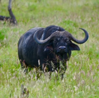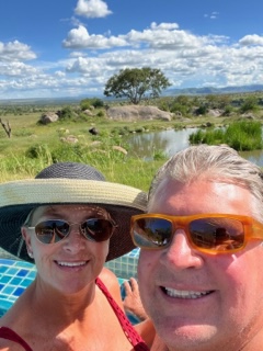 Back to the trip. 22 of us from the ship boarded a plane to the Karibu Seronera Airstrip which is located in the national park. Can’t even call it an airport because it is literally a dirt airstrip! After the 90 min flight, we landed and then split into groups of 4-6 people and jumped into our 4×4’s. We immediately began our first safari on our way to the Four Seasons Lodge where we spent 4 days and 3 nights in luxury including a room that looked out at a watering hole where animals came to drink or cool off with a swim. If you look close enough at the pictures, you’ll see a Cape Buffalo in the water hole. We were treated to a ritual dance from the Maasi tribe and spent a couple of afternoons in the infinity pool that looks out at the watering hole and plains.