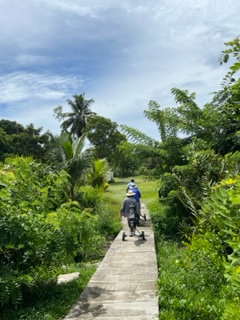 We arrived the day after Easter which is a holiday so many places were closed. We, however, decided to play golf! (πShocking) Oh boy, this was a real goat track but at least our rented clubs were better than the last one! We played with another couple from California. He belongs to Riviera! The course was a walking 9-hole and the weather was muggy and hot – basically a work out. The course was laid out amongst a jungle which made for nice scenery, at least. We hired a taxi driver to take us there and pick us up. Her name was Queen Mary (kid you not) so I said I was Princess Teri (which family already is familiar with π) She’s around 50 years old and gave me her contact info so I could set her up with a single man from America Hit me up if you are interested!!! She’s in the bottom picture.