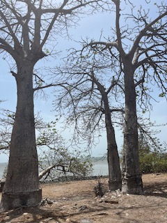 Then we boarded another boat and headed to Kunta Kinteh Island. This island was called James Island until 2011 when it was renamed. Many of you will remember the book by Alex Haley and mini-series Roots. Roots was based on Alex Haley’s genealogy about his family and claimed to have traced it back to a man called Kunta Kinteh who had been captured from this area, taken to this island and then sold into slavery winding up in America. (I only say ‘claimed’ because Alex Haley later admitted that some parts were fictionalized and other taken from a book titled The African by Harold Courlander) Nevertheless, the fact remains that this area and island was a major port in the Slave Trade. Between 1650 and 1860, approximately 10 to 15 million enslaved people were transported from western Africa to the Americas. Most were shipped to the West Indies, Central America and South America. The people were captured and taken to the island to wait for 2-3 weeks until a ship arrived and they were sold. During the time on this island, they were underfed and mistreated. Many tried to swim the 2 miles back to their homes but were attacked by crocodiles or drown in the strong current. The last look of the life they knew was through the trees in the picture below. It is known as the Point of No Return.