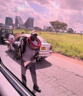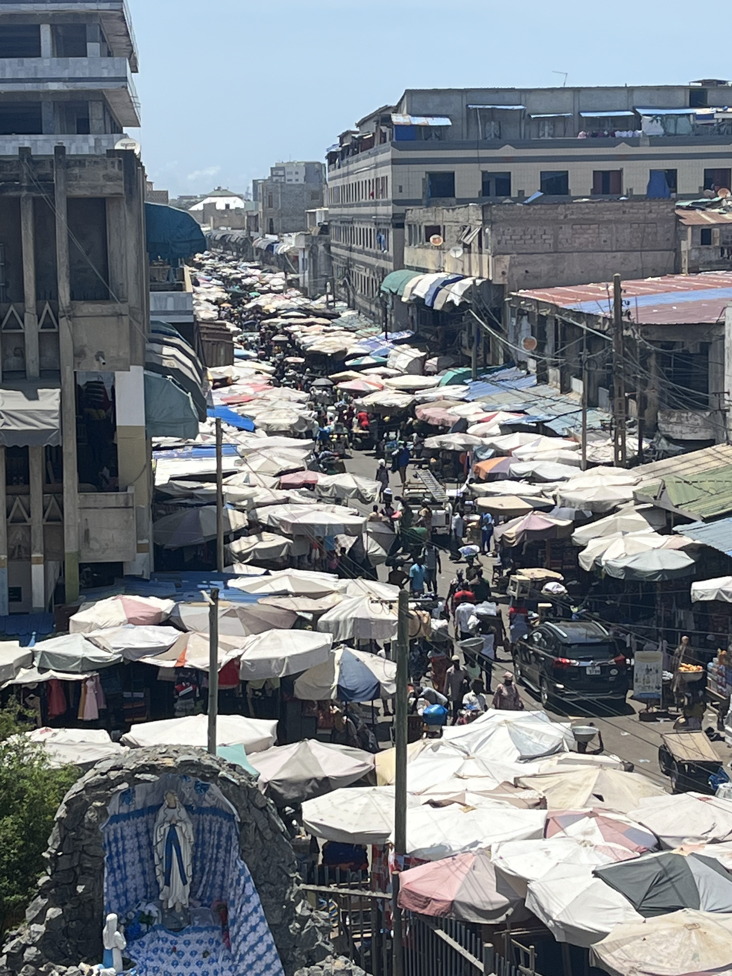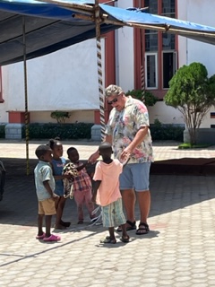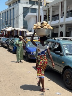 Togo is similar to Benin and Ghana. Togo received independence from France in 1960 and they, too have an independence square. We visited the Palace of the Governors which was built by German and Togolese architects between 1898 and 1905 and sits in a beautiful park that looks out at the ocean. It houses a museum and that hosts art and artifacts of Togo history. We ventured to another market. These markets sell everything from used clothes to brooms to food and cheap cosmetics. And if you still need more to buy, you can usually find something from someone selling in traffic like the picture here of windshield wipers and steering wheel covers. We also took some chocolate to give to children and visited a school. The kids loved Charlie and didn’t want him to leave. Its hard not to place our values and our measure of what makes us happy on the people here because they really don’t know any difference. The children are like all children – happy – smiling – laughing – curious.