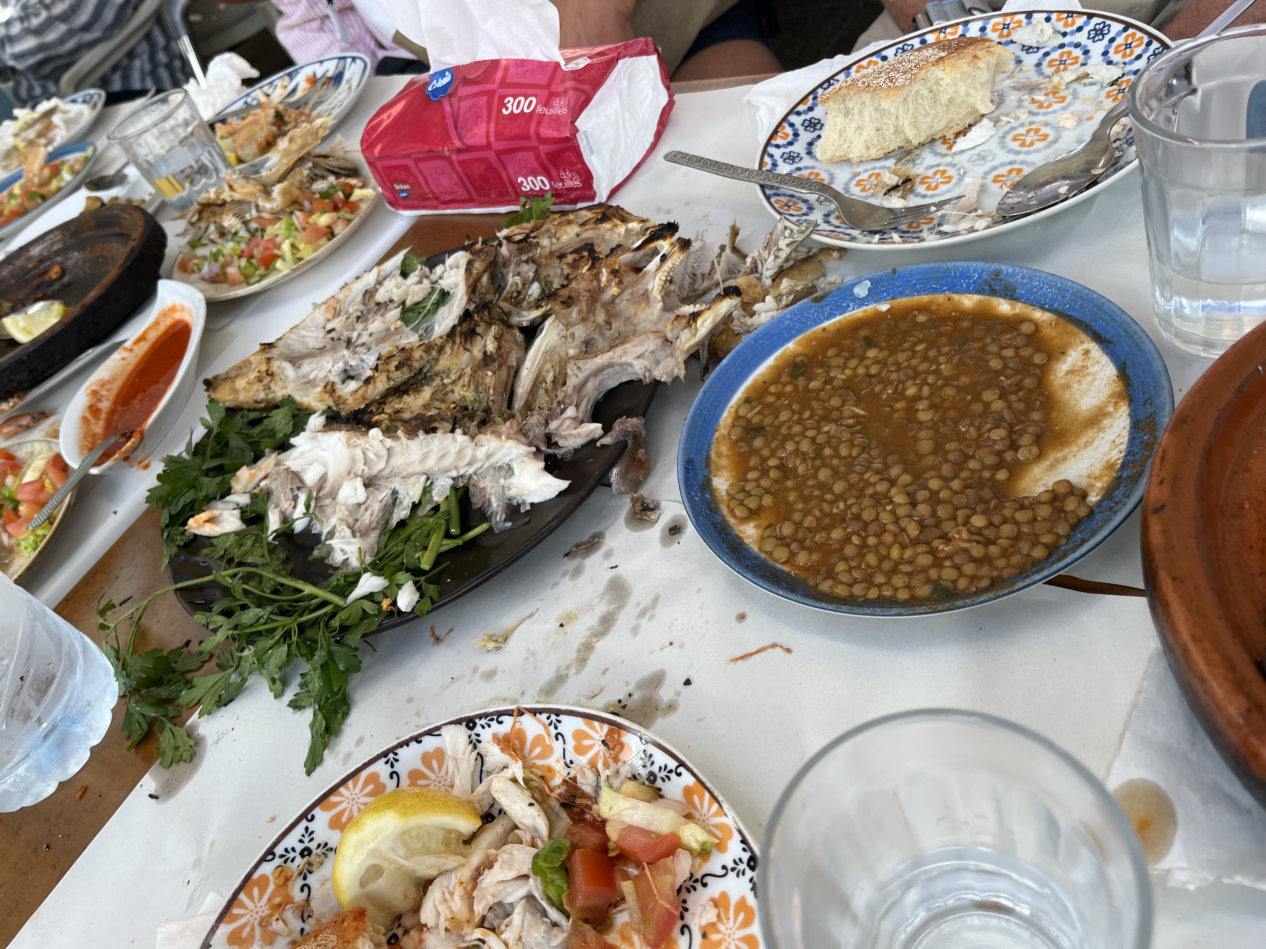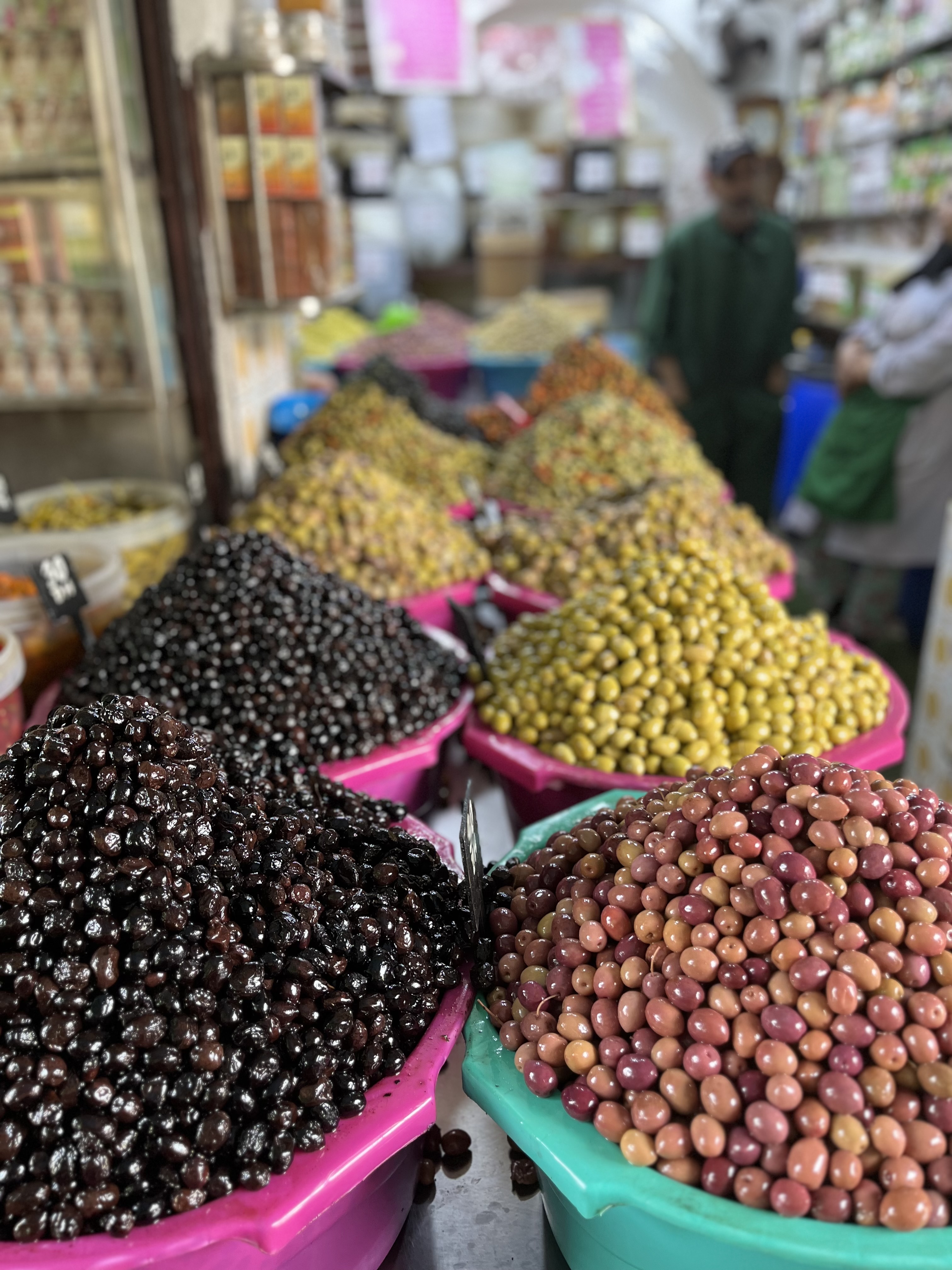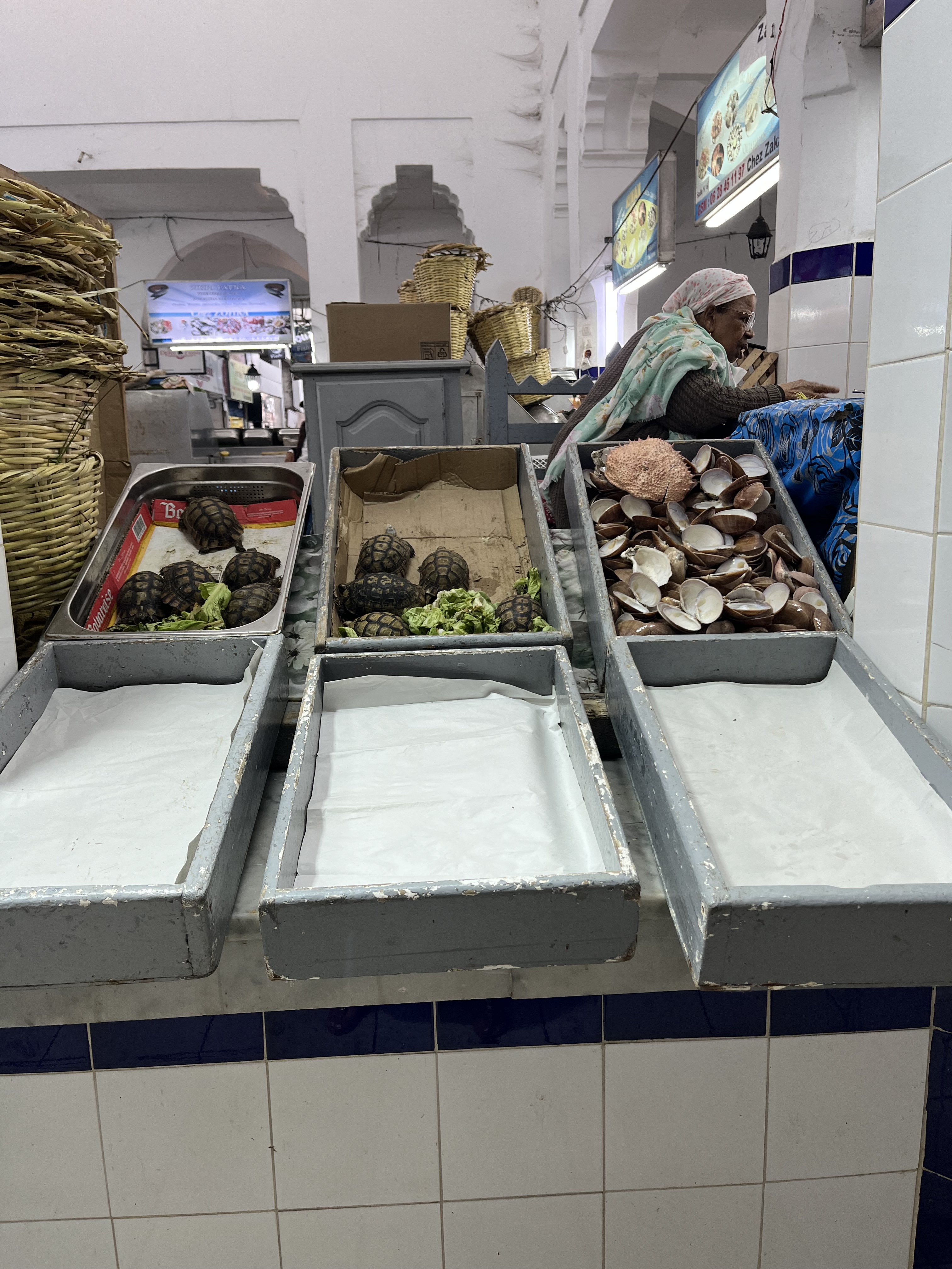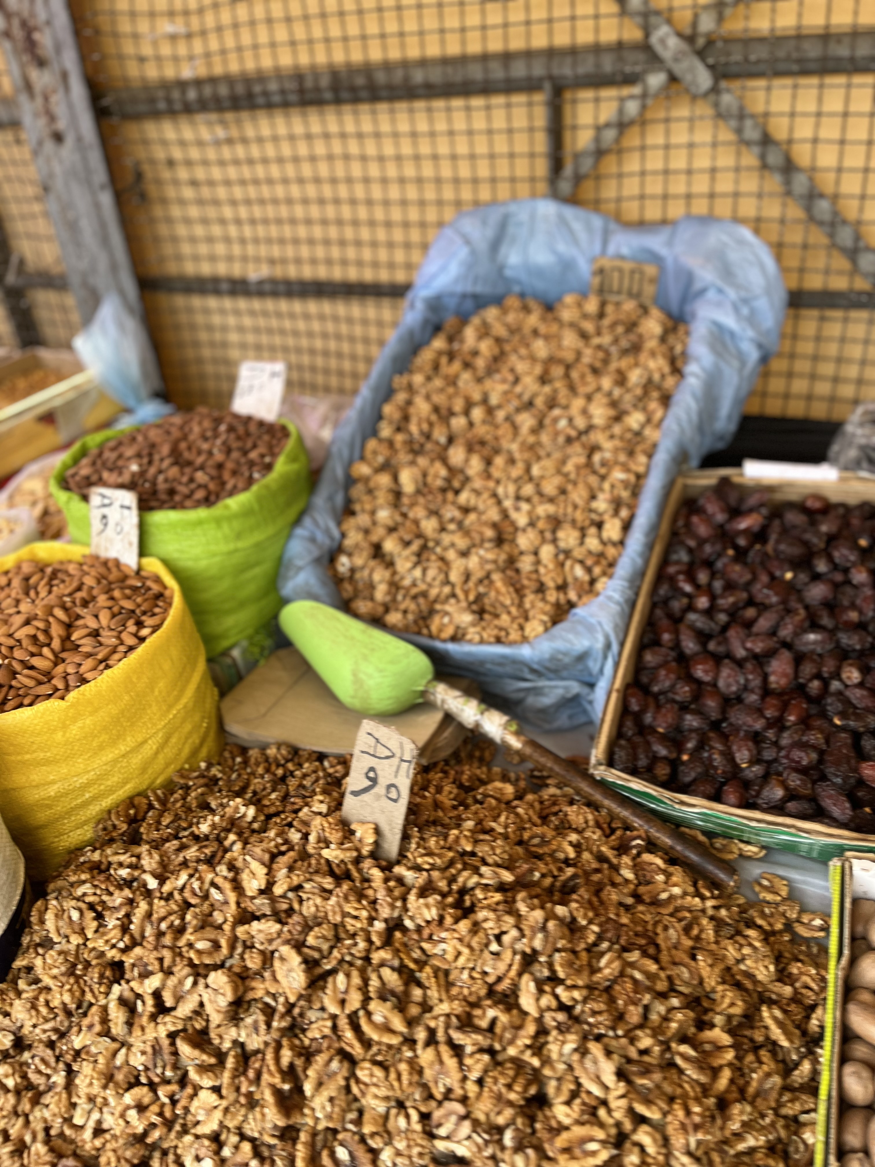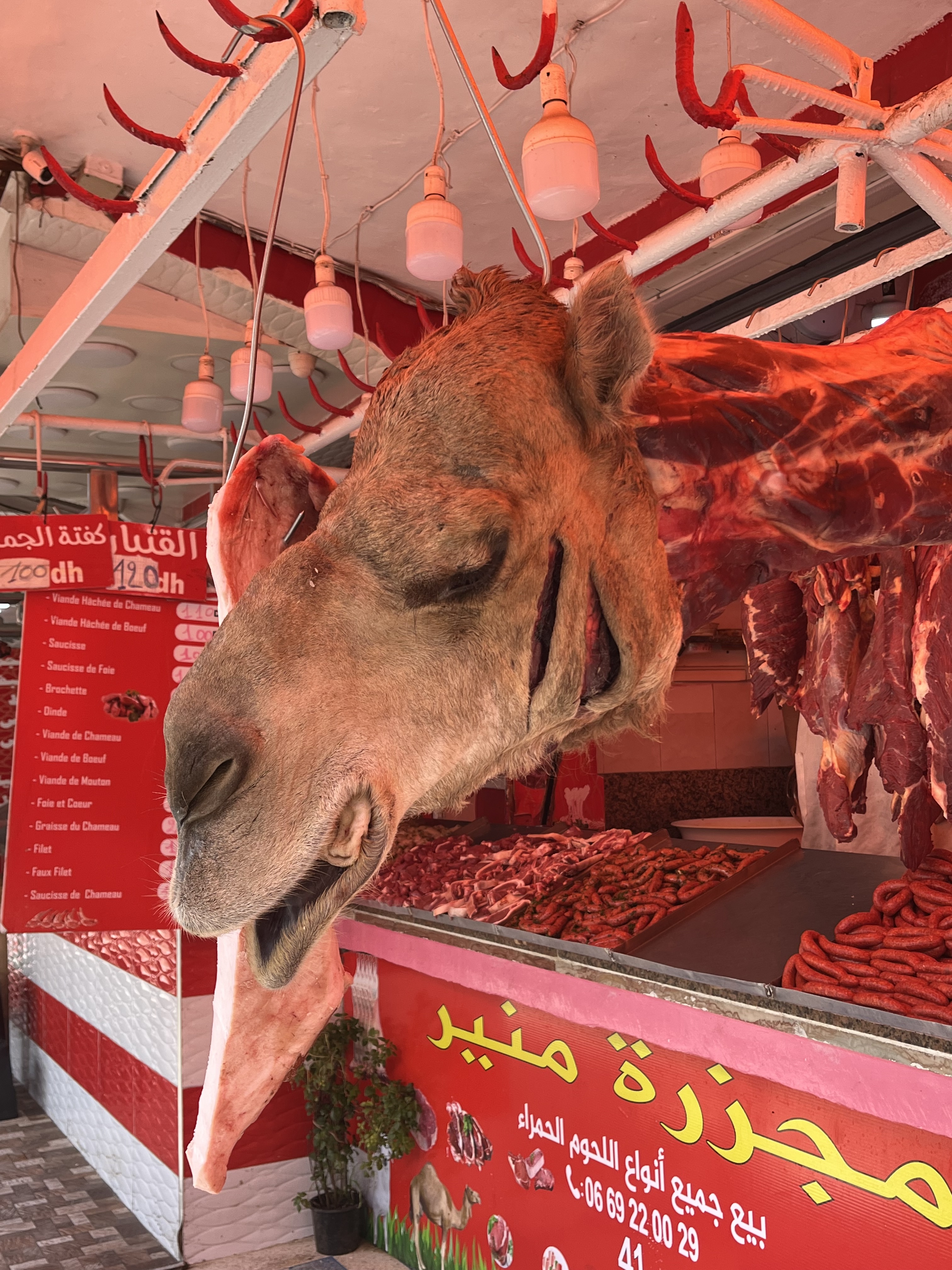 As part of our tour, we went to a local bakery and met a gentleman whose job is to bake goods for people who bring their dough from home. Yes, not everyone has an oven so the travel to this ‘oven room’ and pay to have their bread/cookies/pastries baked. We had local mint tea (yummy!) and visited stalls of fresh olives, raisins, fresh fish and meat. The colors and smells were amazing and tasting such freshness made our food in US fail to compare. We purchased fresh fish and took to a local restaurant where they cooked for us – this is another normal thing. What wasn’t normal – the Horse and Camel meat for sale!!! YIKES!